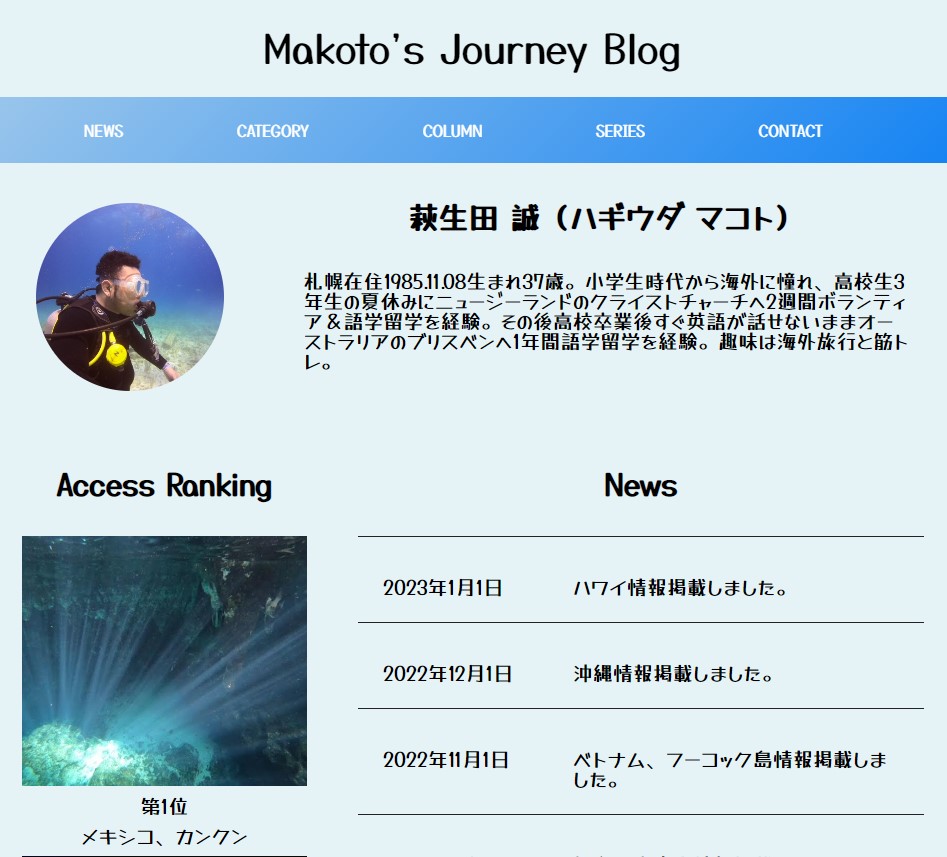 高校時代ニュージーランドへ2週間短期留学したのをきっかけに海外に憧れ、高校卒業後オーストラリアで1年間語学留学しておりました。今まで海外旅行は20回程度。